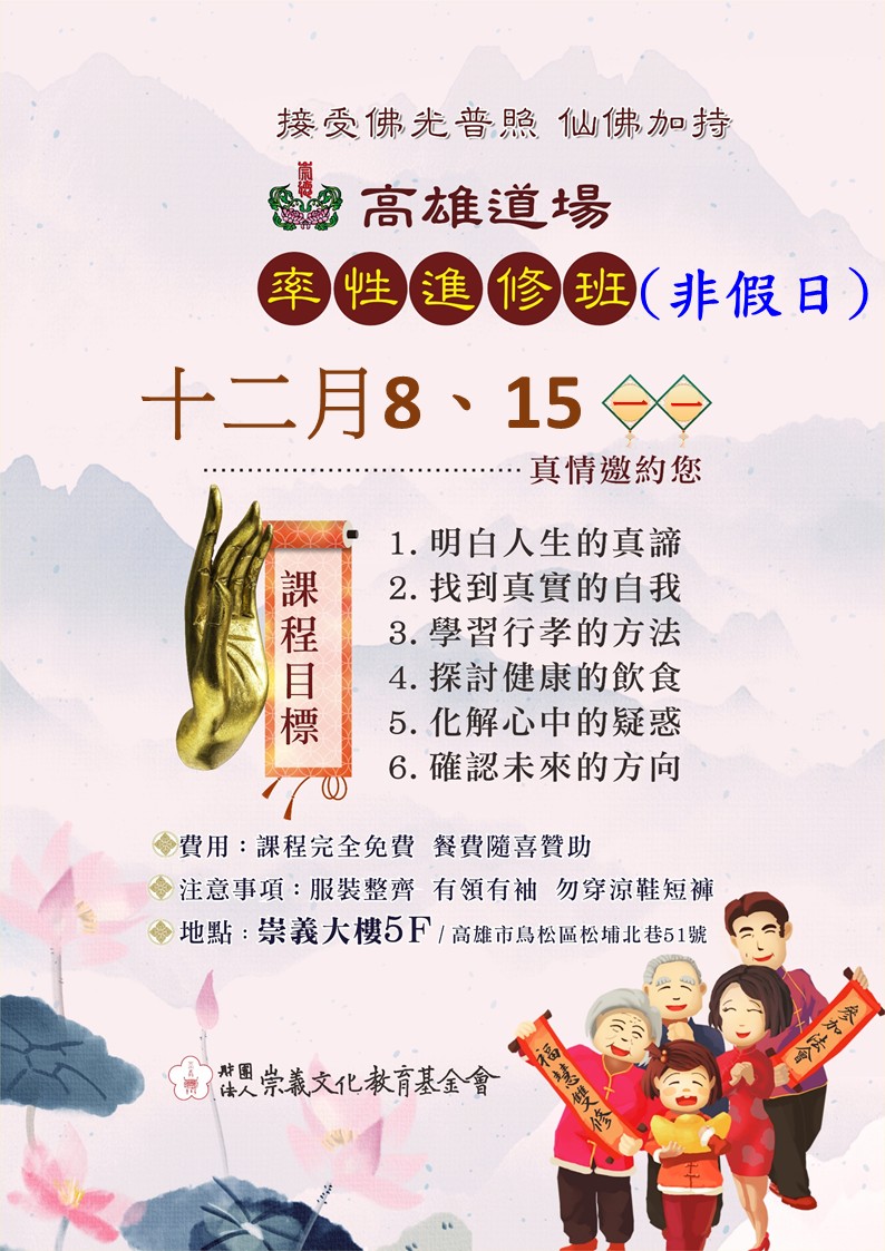 高雄道場率性進修班(非假日)12月/8(一)日、12/15日(一)