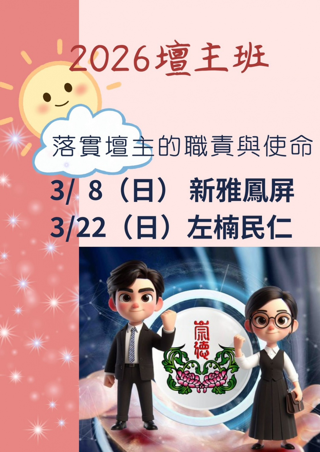 2026壇主班 落實壇主職責與使命 3/8新雅鳳屏,3/22左楠民仁